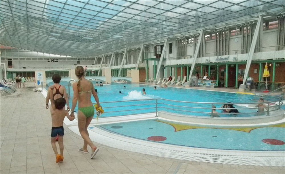 BADEN BEI WIEN, proslulé termální lázně Römertherme, teplé sirné prameny, empírové vily, lázeňský park, dále lesnaté Helenino údolí se zříceninami Rauheneck a Rauhenstein,